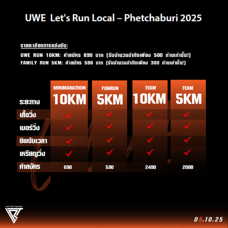 - Mini Marathon (UWE Run) 10KM ราคา 690 บาท