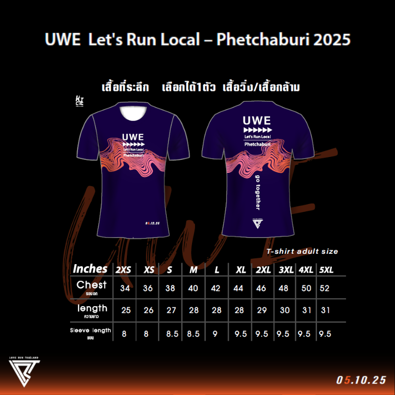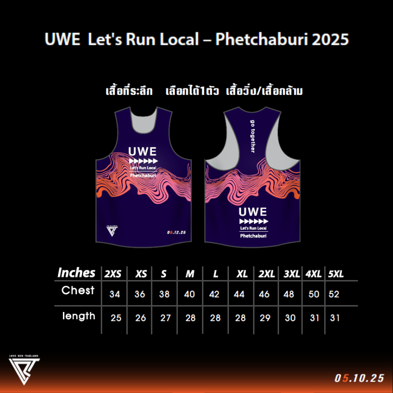 | (ซื้อเพิ่ม) เสื้อวิ่ง UWE (สีส้ม) | 280 บาท | |