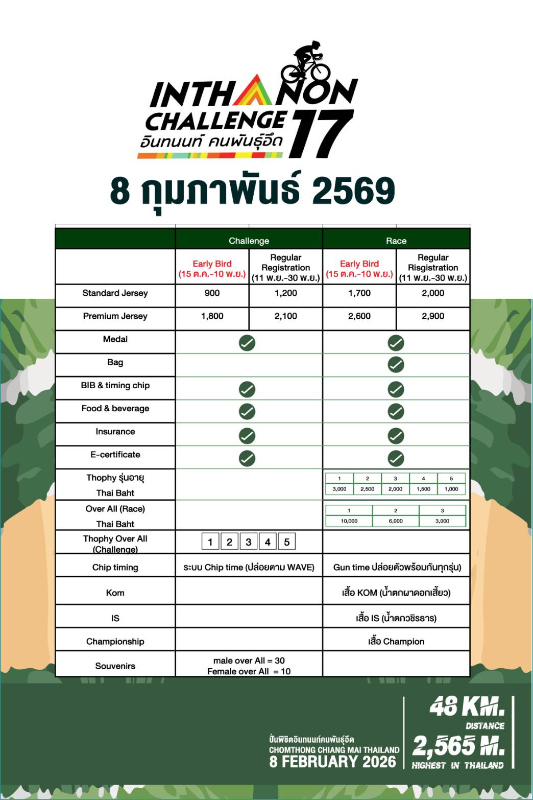 - 2,600 บาท ประเภทแข่งขัน (Race) / Premium Jersey