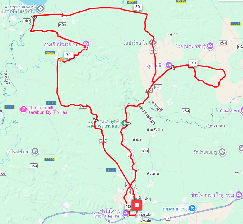 แผนที่เส้นทางปั่น ระยะทาง 101.5 กม.