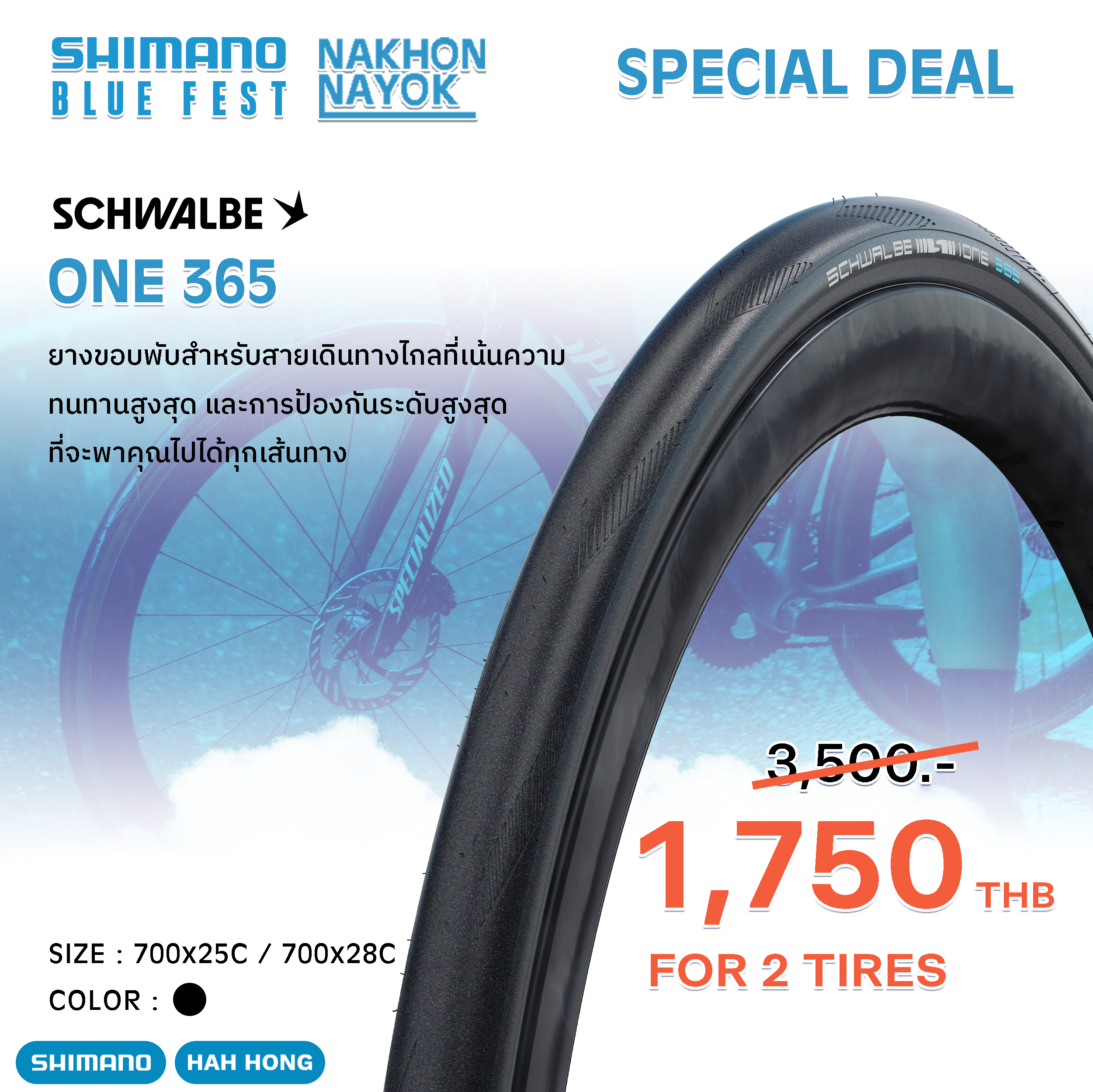 สิทธิซื้อยาง Schwalbe One 365 Tube Type ในราคาพิเศษเพียง : 1,750 บาท (ราคา 2 เส้น) จาก 3,500 บาท