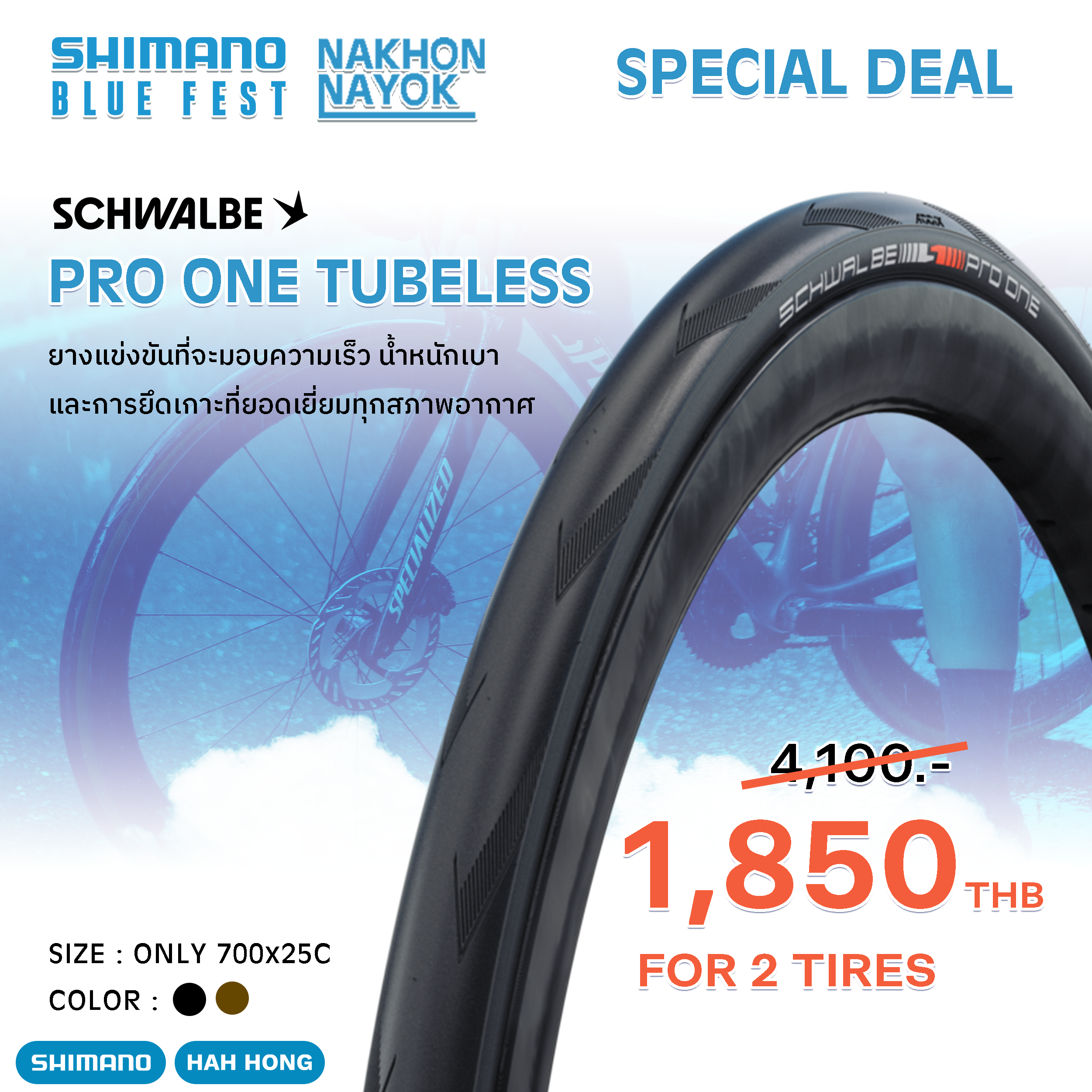 สิทธิซื้อยาง Schwalbe Pro One Tubeless ในราคาพิเศษเพียง : 1,850 บาท (ราคา 2 เส้น) จาก 4,100 บาท