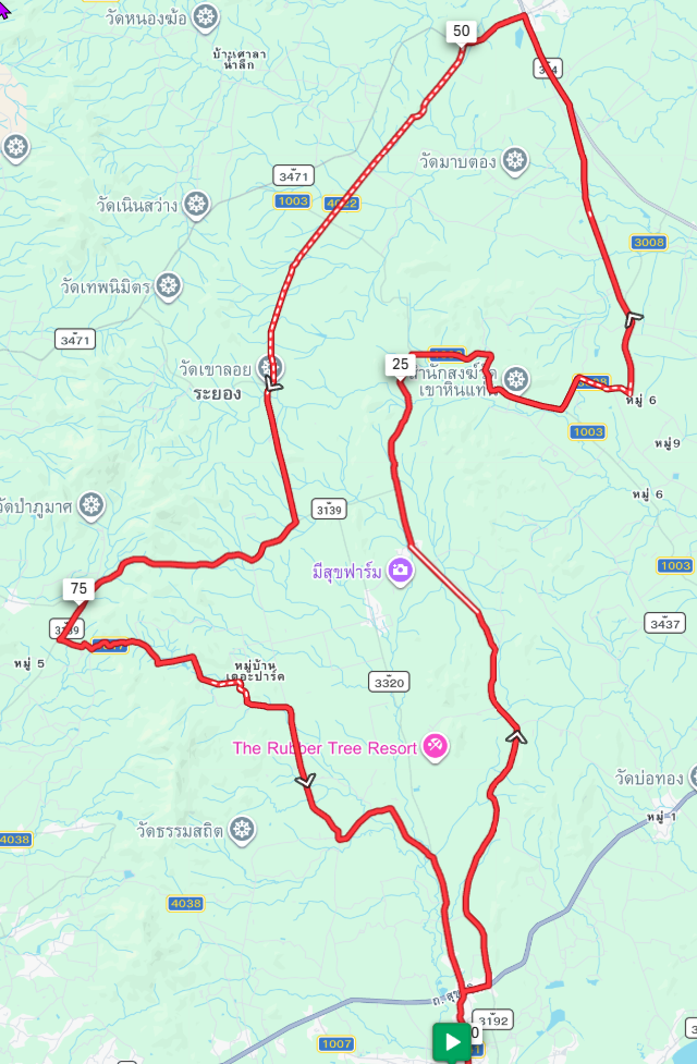แผนที่เส้นทางปั่น ระยะทาง 100 กม.