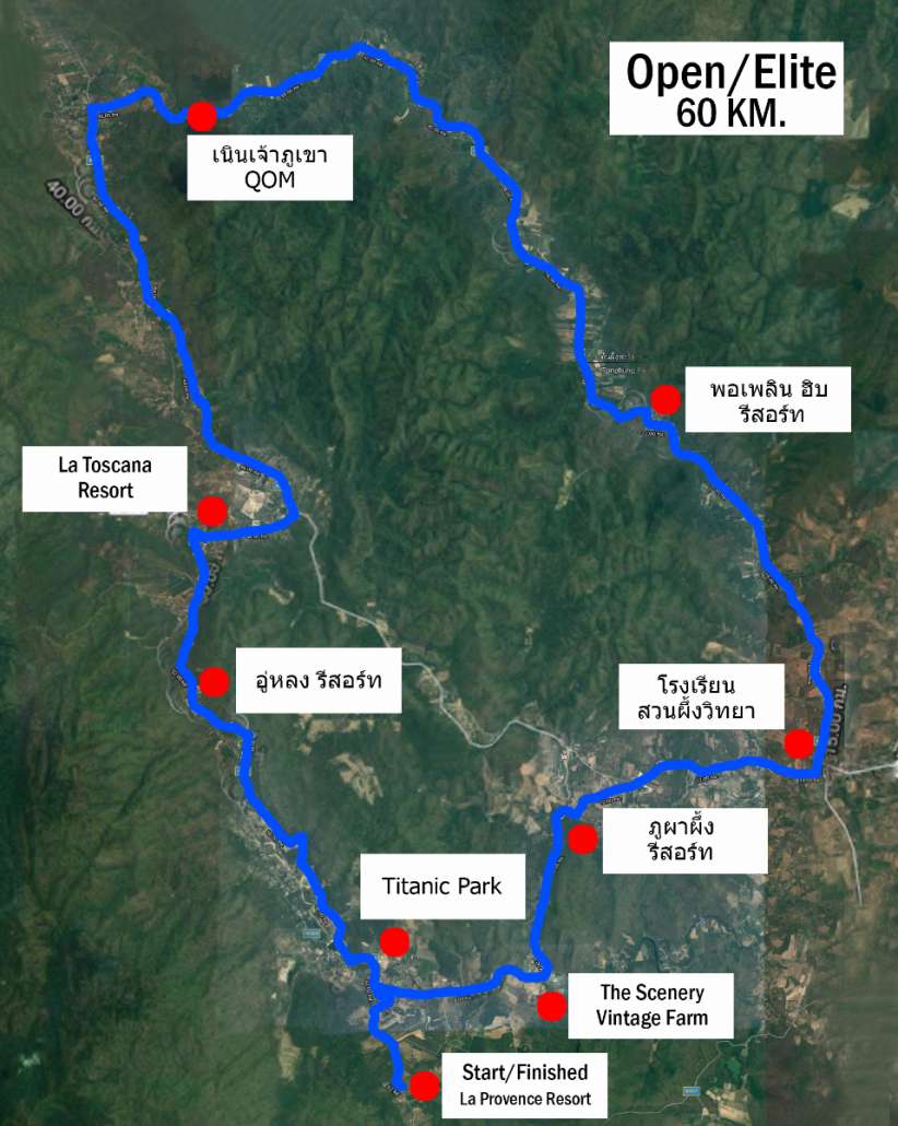 2. การแข่งขันจักรยานทางเรียบประเภทรุ่นอายุหญิง Lady Elite 35 ปีขึ้นไป โดยผู้ชนะจะได้รับถ้วยรัฐมนตรีว่าการกระทรวงท่องเที่ยวและกีฬา ท่านกอบกาญจน์ วัฒนวรางกูร จำนวน 10 ลำดับ และมีรางวัลสำหรับเจ้าภูเขา เสื้อ QOM 1 รางวัล (รางวัลเจ้าภูเขาตัดสินที่จุดเนินเจ้าภูเขา) ระยะทาง 60 กม. (เส้นทางจักรยานสีฟ้า เริ่มต้นที่ ลาโปรวองซ์ รีสอร์ท จบที่ ลาโปรวองซ์ รีสอร์ท) ค่าสมัคร 800 บาท