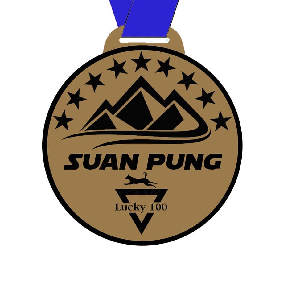 เหรียญประจำสนามลัคกี้ร้อย สวนผึ้ง บ่งบอกระยะทางปั่น 107 km มาพร้อมระยะไต่ 1,380 m