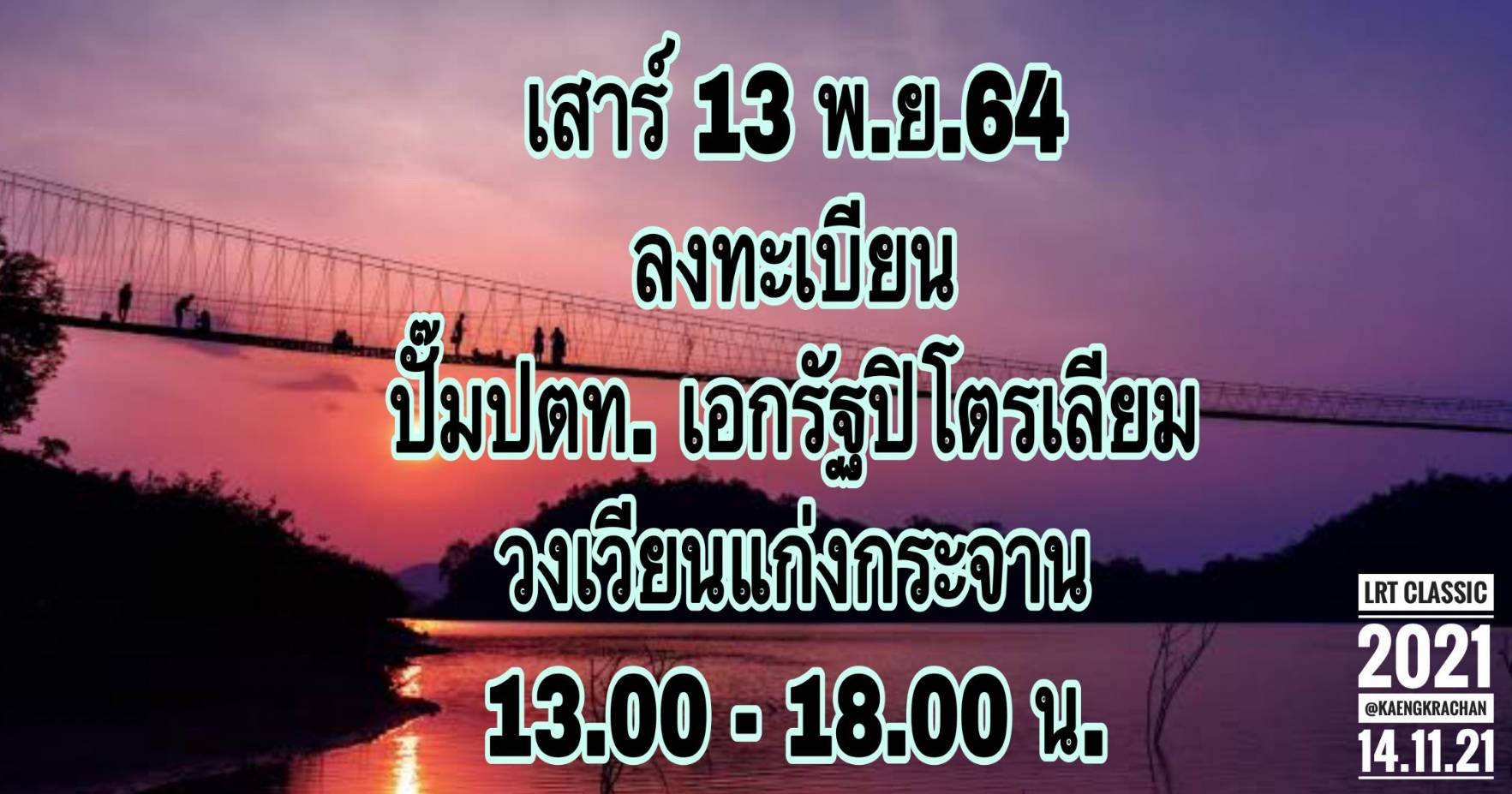เลื่อนการจัดงาน LRT Classic 2021 @Kaengkrachan จากเดิมวันที่ 31 ตุลาคม 64 ไปเป็นวันที่ 14 พฤศจิกายน 64 สถานที่ เส้นทางแข่ง และกำหนดการทุกอย่างยังเหมือนเดิม