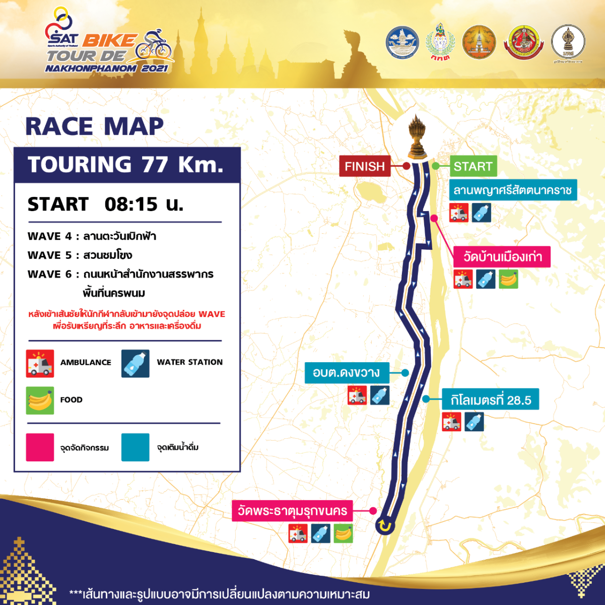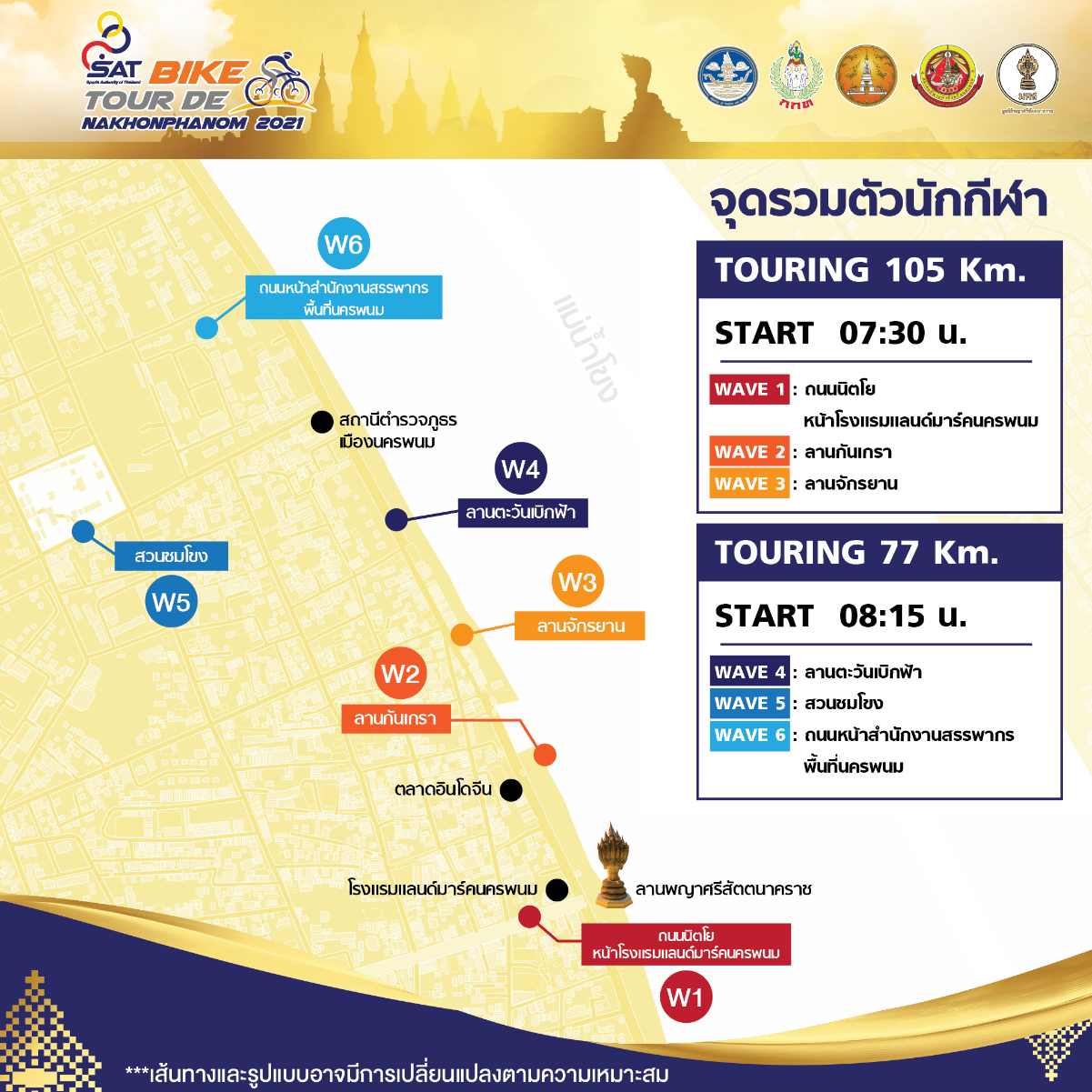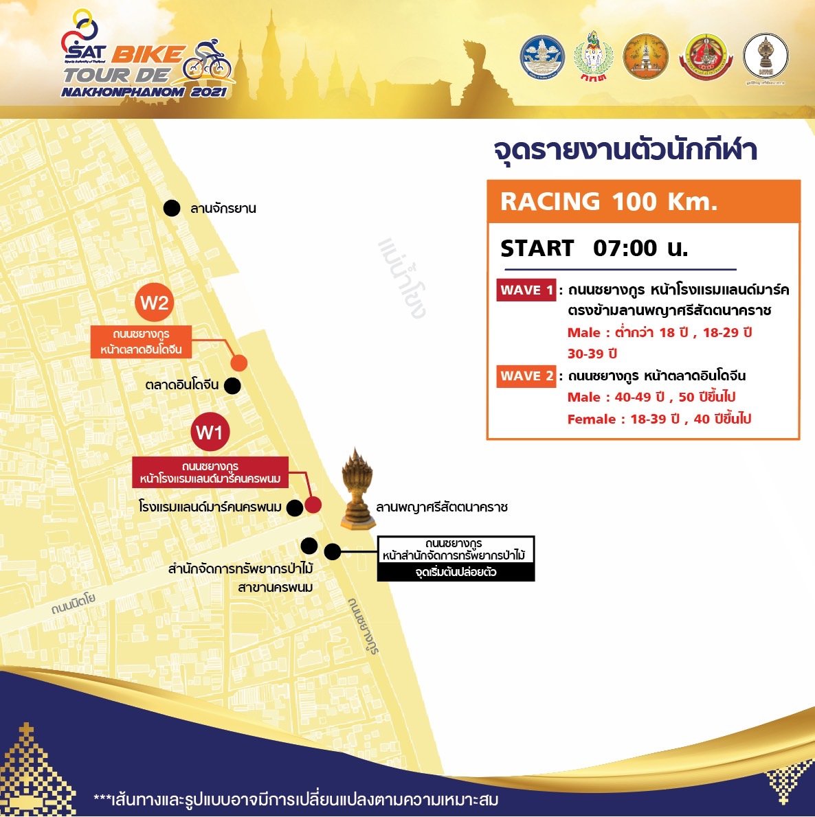 สถานที่จัดการแข่งขันและจุดปล่อยตัว: บริเวณหน้าลานพญาศรีสัตตนาคราช อำเภอเมือง จังหวัดนครพนม