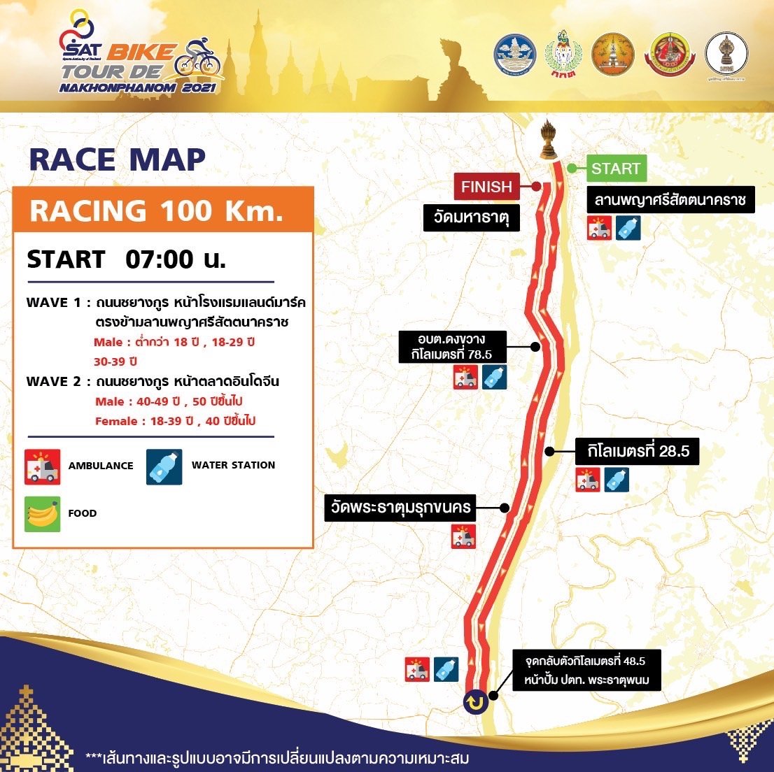 หมายเหตุ : ฝ่ายจัดการแข่งขันขอสงวนสิทธิ์เปลี่ยนแปลงเส้นทางแข่งขันตามความเหมาะสม