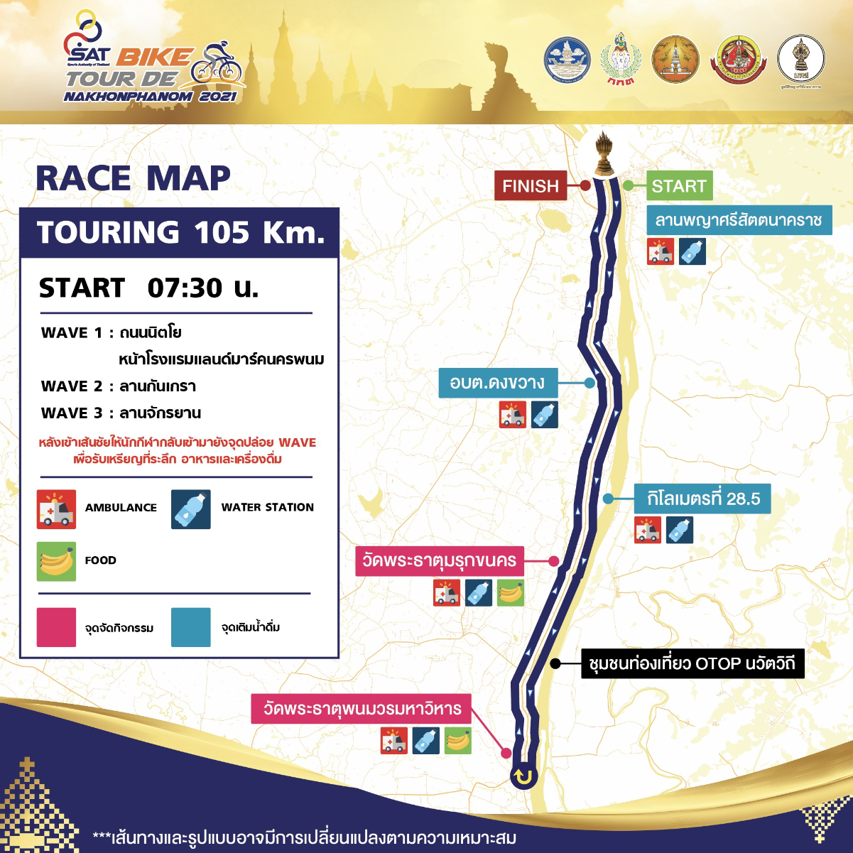 สถานที่จัดการแข่งขันและจุดปล่อยตัว: บริเวณหน้าลานพญาศรีสัตตนาคราช อำเภอเมือง จังหวัดนครพนม