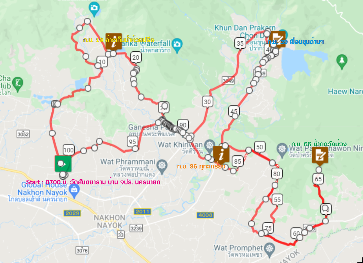 เส้นทางปั่นร่วมไปด้วยกันกับระยะ 100 ปกติ หลังจากเก็บภาพชุดใหญ่กันที่เขื่อนขุนด่านแล้ว ปั่นตรงมาจนถึงวัดคีรีวัน และเข้าพักชม "บันไดนาค" ที่โลกลืม "วัดเขานางบวช" พักร่วมบุญกับวัดปั่นตัดตรงเข้ามาที่ Finish