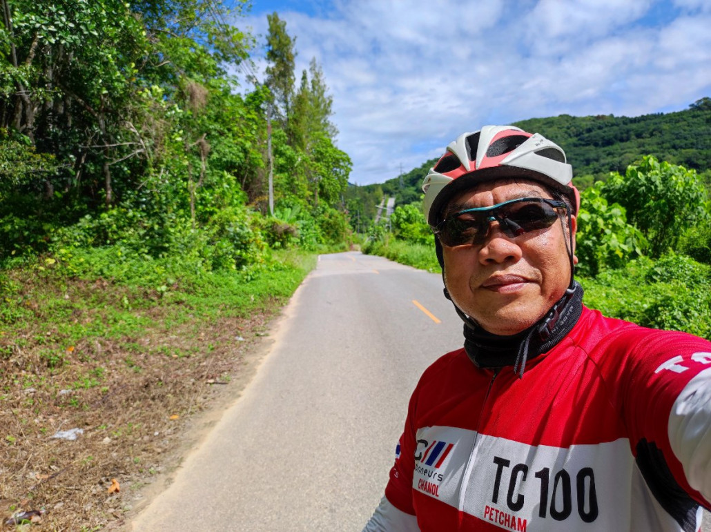 ที่เป็นหมู่บ้าน เข้ามาทาง”วัดยายจั่น” มองคล้ายเนินกำนันเหลิมที่จันทบุรี มองเห็นแนวเขาอยู่ลิบ ๆ ไหลลงไปนิ่ม ๆ พอได้แรงส่งปั่นทิ้งรอบขาอีกนิดเดียวก็พอจะหลุดเนินไหลลงไปอีกด้านได้ เส้นทางระยะไต่สูงรวม ดูเหมือนจะเกินเบอร์ แต่ปั่นจริง ๆ แล้วกลับสนุก มีแค่เนินเดียวที่ท้าทายแลเป็น Hi Light สนาม คือ เนินบรุคไซด์ ที่เหลือ คือทาง Rolling ส่งรับกันตลอดทาง อากาศเย็นจนหนาว เมื่อเข้าร่มอุโมงค์สวนยาง เที่ยวกลับลงมา ไหลเบา ๆ ก็เกิน 28 ทุกคัน