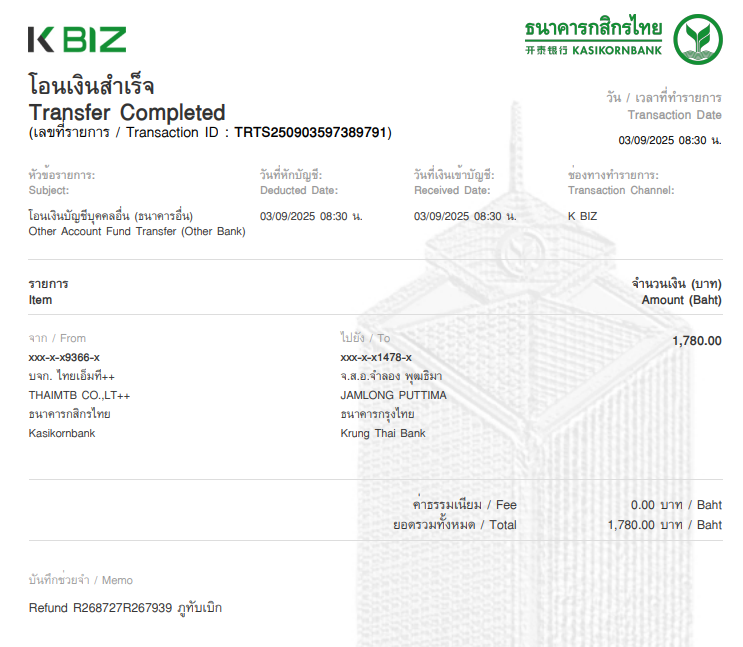 (ค่าบริการ และ ค่าธรรมเนียมต่างๆ จะไม่สามารถ refund ได้)